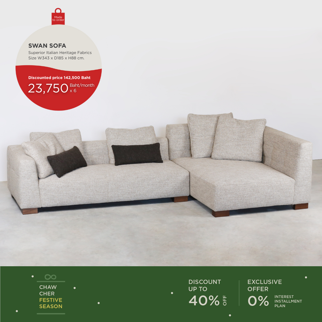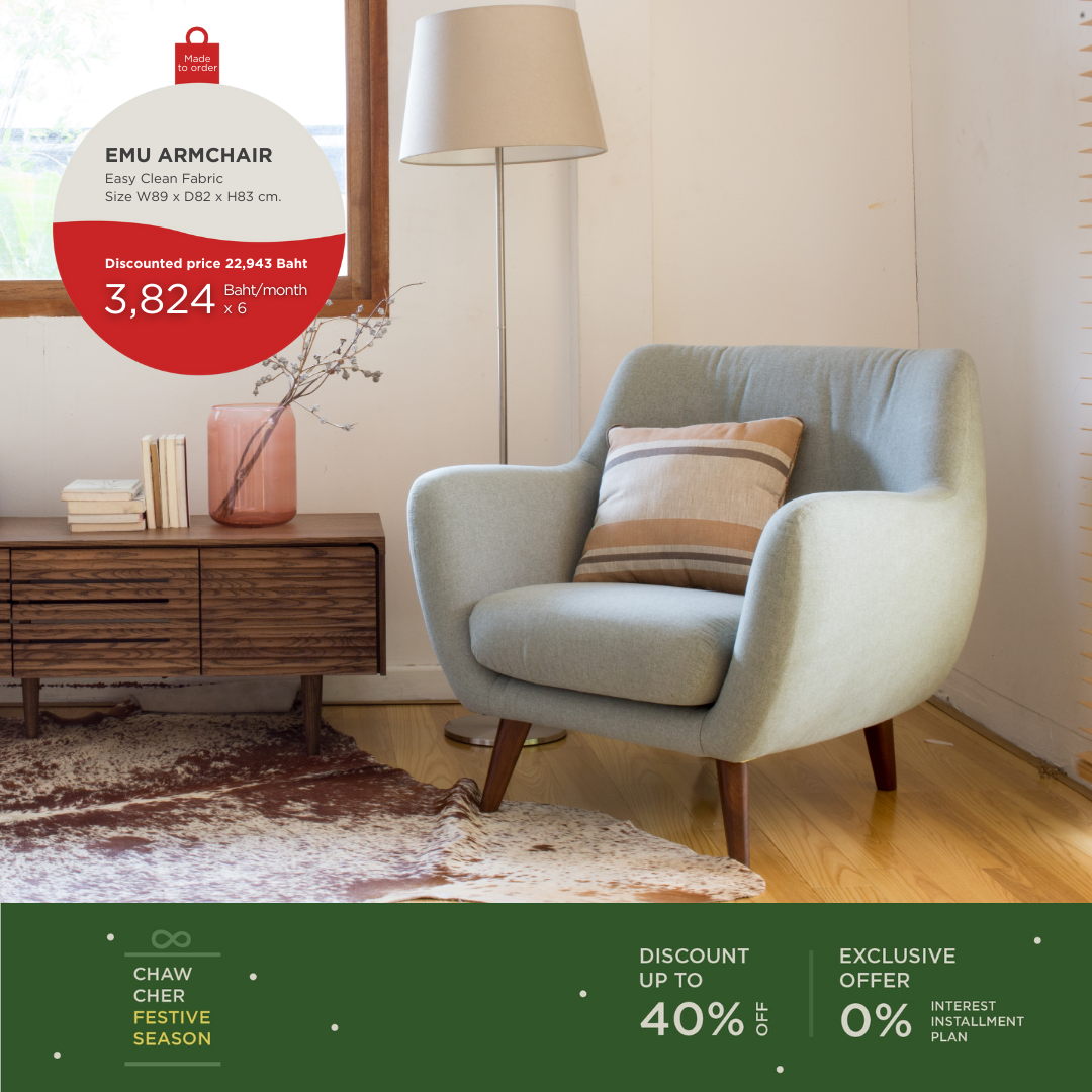 December 3, 2025 by admin in Promotion 0 Comments Festive Season Sale Discount up to 40% off & 0% Interest Installment Plan ส่งความสุขท้ายปี ด้วยเฟอร์นิเจอร์ที่ทำให้ทุกวันของคุณพิเศษยิ่งขึ้น 𝙁𝙚𝙨𝙩𝙞𝙫𝙚 𝙎𝙚𝙖𝙨𝙤𝙣 𝙎𝙖𝙡𝙚 ลดสูงสุด 40% “ส่งความสุขส่งท้ายปี ด้วยเฟอร์นิเจอร์ดีไซน์เหนือกาลเวลา ที่จะทำให้บ้านของคุณอบอุ่น มีชีวิตชีวากว่าที่เคย” ชำระด้วยเงินสด ลดเพิ่ม 10%ชำระผ่านบัตรเครดิต KBank เลือกผ่อน 0%สูงสุด x6 เดือน รับส่วนลดเพิ่ม 5% สินค้าสั่งผลิต เลือกผ้า หรือหนังพรีเมียมได้ตามสไตล์คุณ! และพบกับ Display Item สภาพดี ผลิตขึ้นเพื่อโชว์เท่านั้น ลดกว่า 60% สินค้าราคาพิเศษ สินค้า Display Item และ สินค้า Made to order สอบถามเพิ่มเติมได้ที่LINE Official Account @chawcher หรือมาลองสัมผัสความสบายด้วยตัวเองที่โชว์รูม Chaw Cher Showroom · เจริญนคร 32/1 Home DecorIdeasModernNewsWood